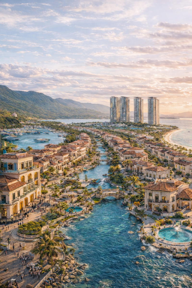 Không chỉ mang vẻ đẹp cổ điển, Phân khu Châu Âu còn là tâm điểm giao thoa giữa truyền thống và hiện đại với sự xuất hiện của chuỗi tòa cao tầng biểu tượng vươn mình bên bờ vịnh. Từ trên cao, tầm nhìn mở rộng ra biển xanh, núi non trùng điệp và toàn cảnh khu đô thị, tạo nên skyline ấn tượng – biểu trưng cho một cộng đồng thịnh vượng và năng động.