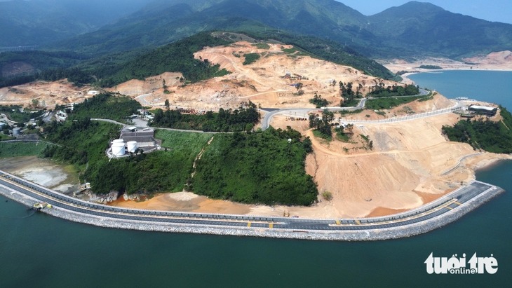 Từ thời điểm giáp Tết đến nay, công trường siêu dự án Làng Vân tạm thời lắng lại. Máy móc, thiết bị được sắp xếp gọn gàng, tạo không gian thông thoáng cho dòng xe du xuân lưu thông trên cung đường đèo Hải Vân nối Đà Nẵng – Huế.